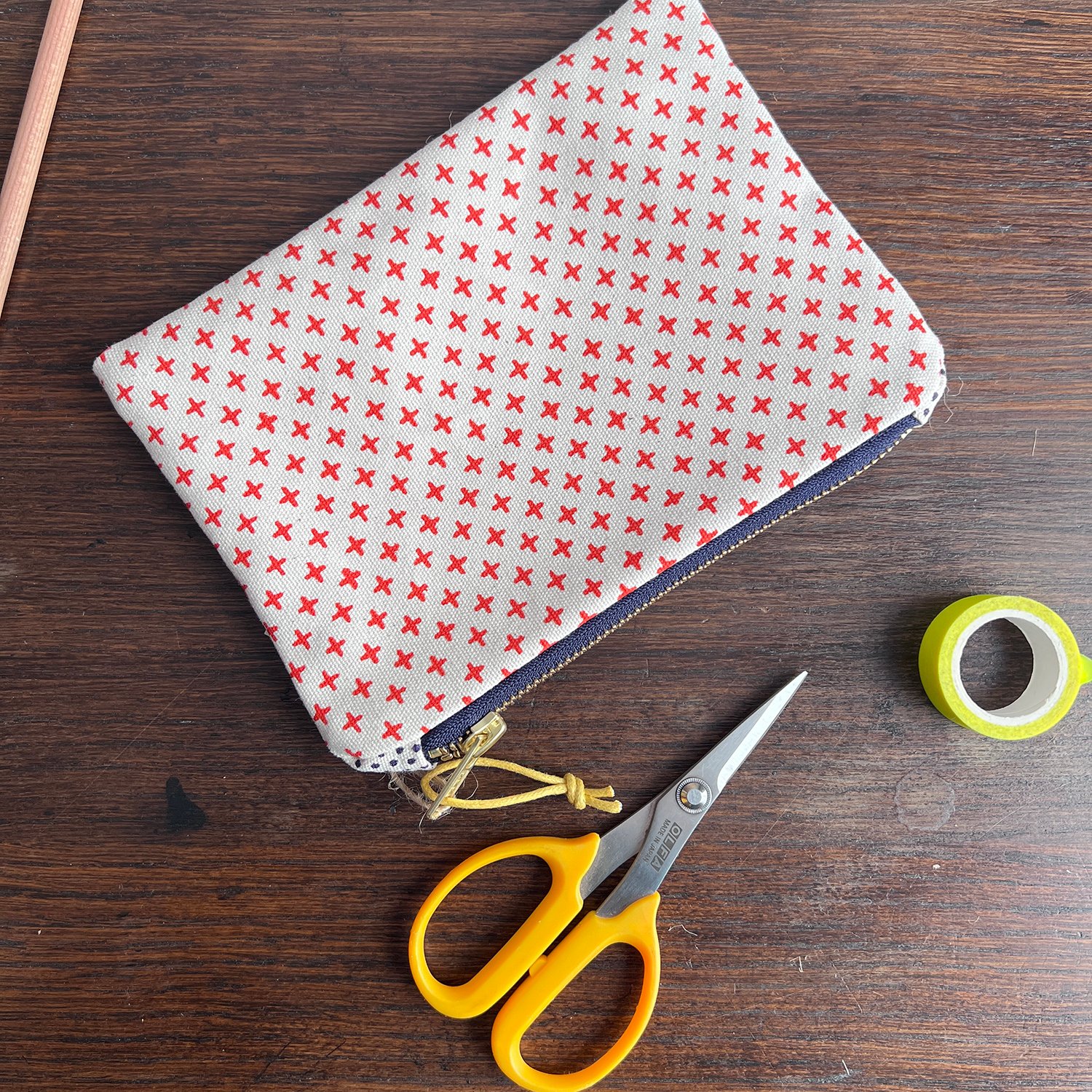 This zippy pouch is screenprinted with my addy pattern created with mathematical marks made by a vintage typewriter.