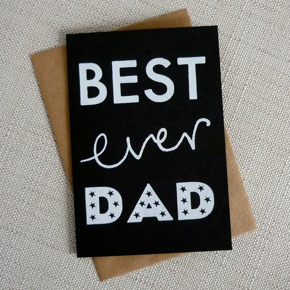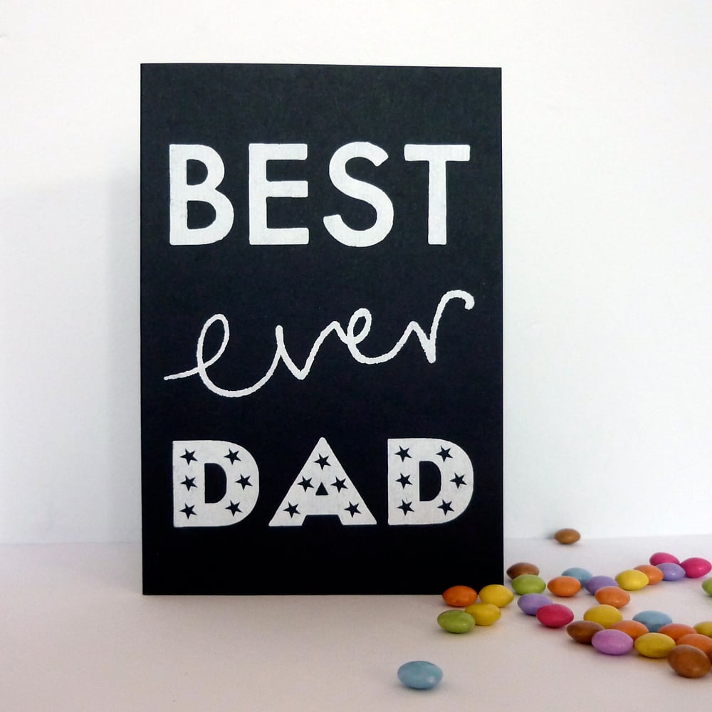 Let your dad know he's the best ever with this screenprinted typographic Father's Day greeting card.
