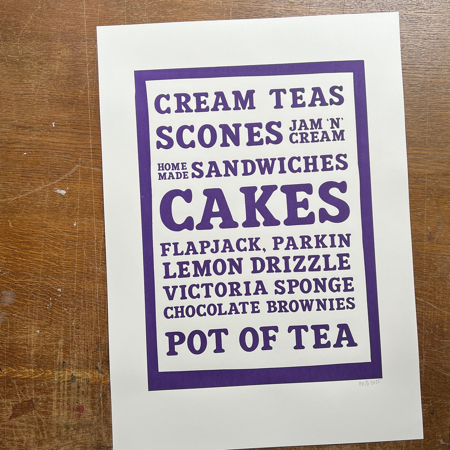 It's our delicious tea room menu screenprint poster, with all the most-loved afternoon tea sweet treats.