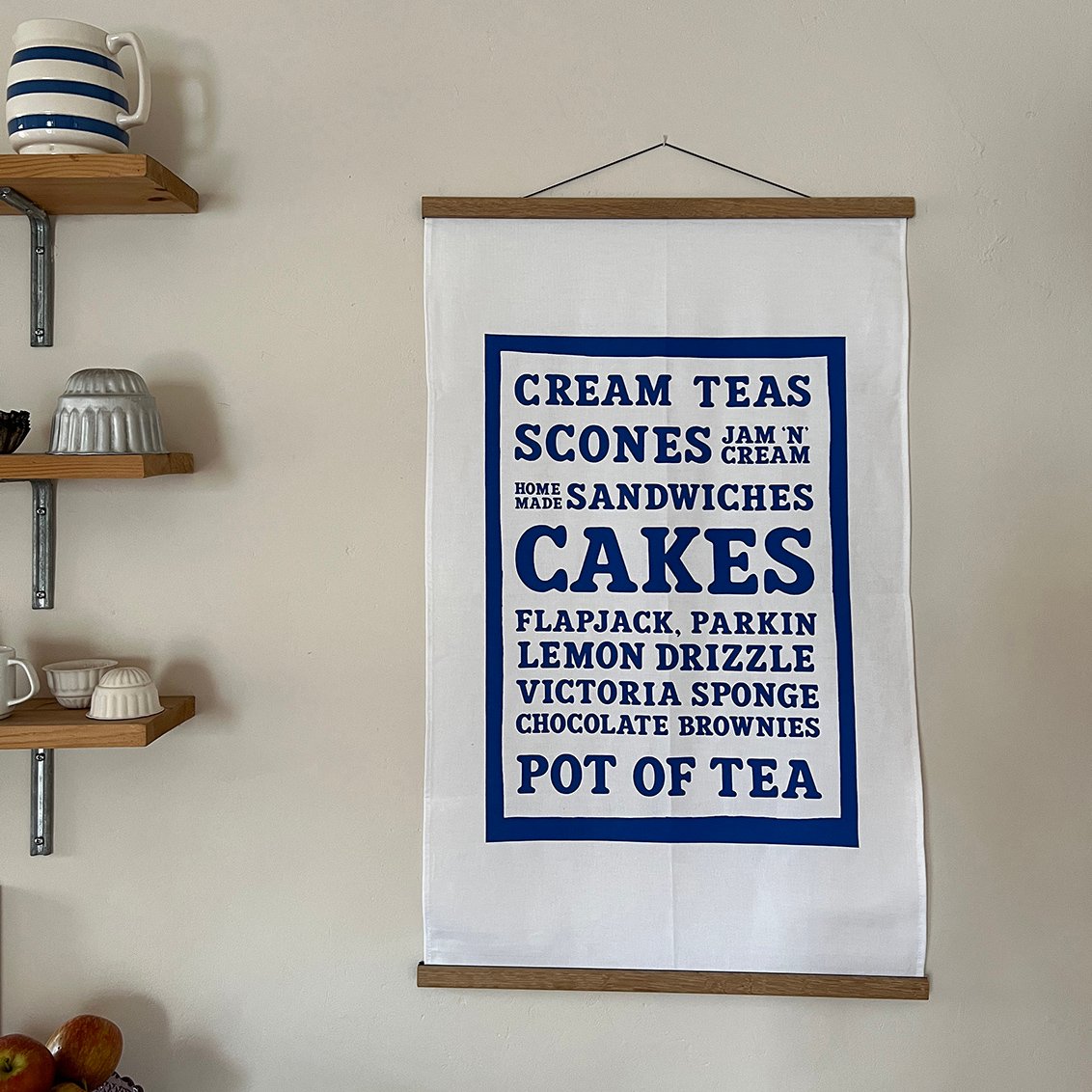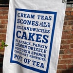 A 100% cotton tea towel screenprinted with a delicious tea room menu of cakes and sweet treats.