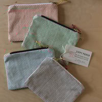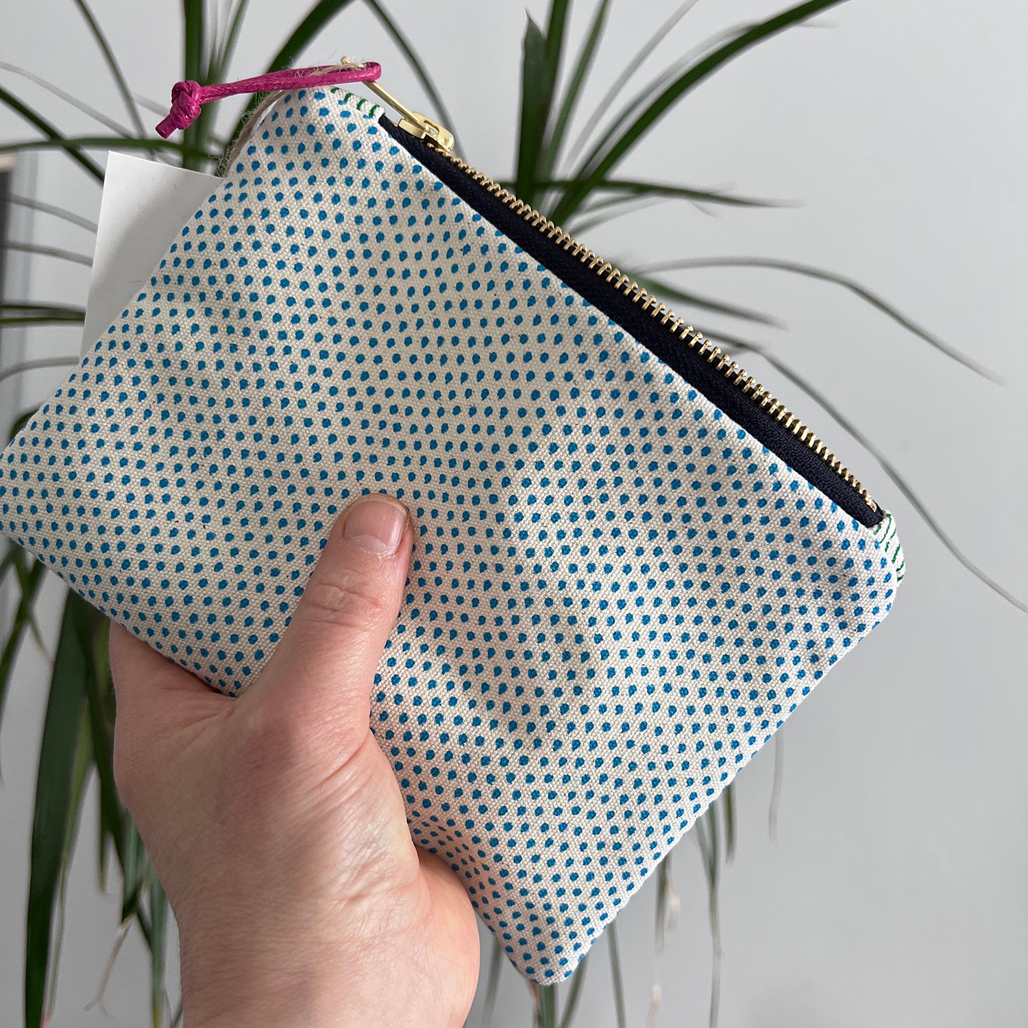 This zippy pouch is screenprinted with my dotty pattern created with full stop marks made by a vintage typewriter.