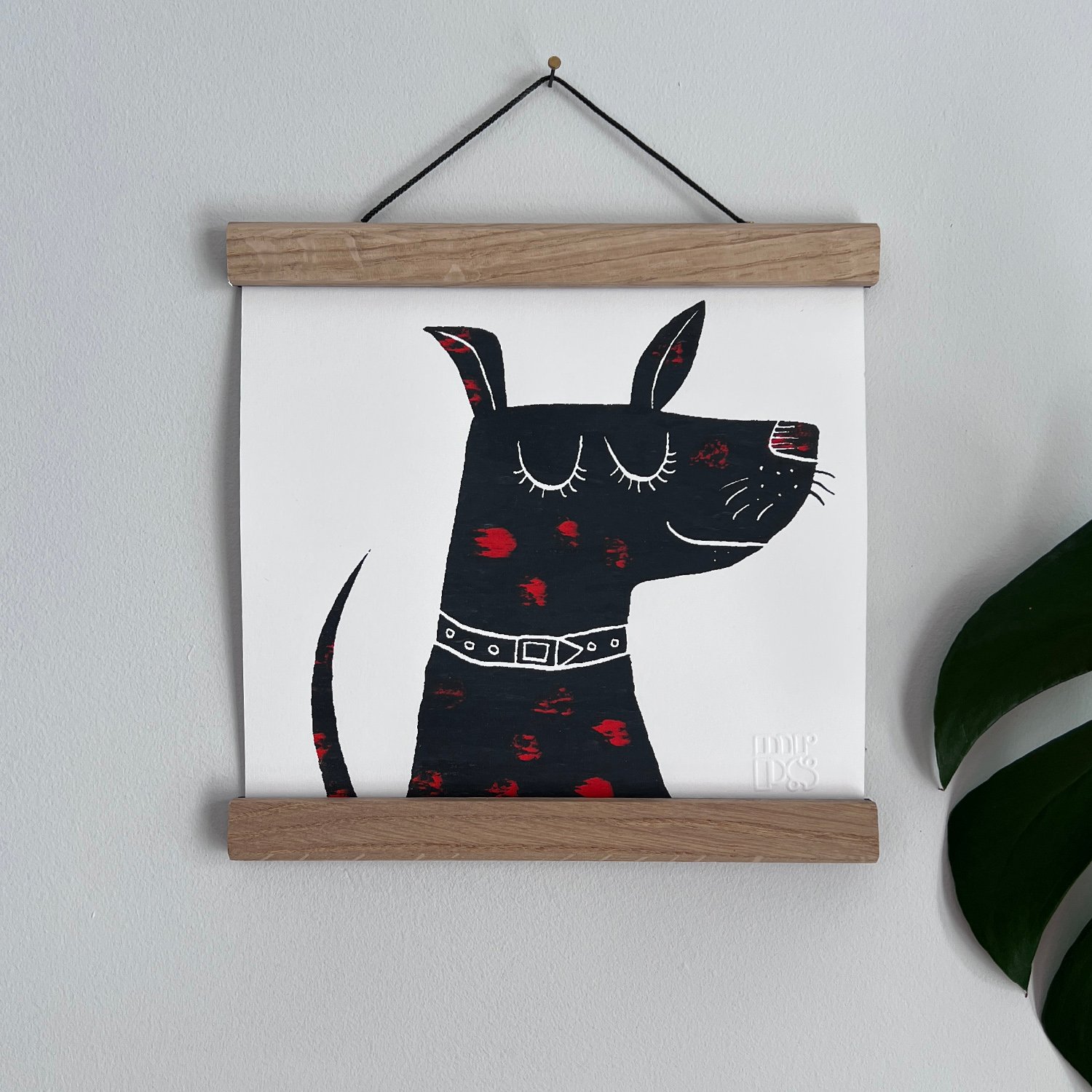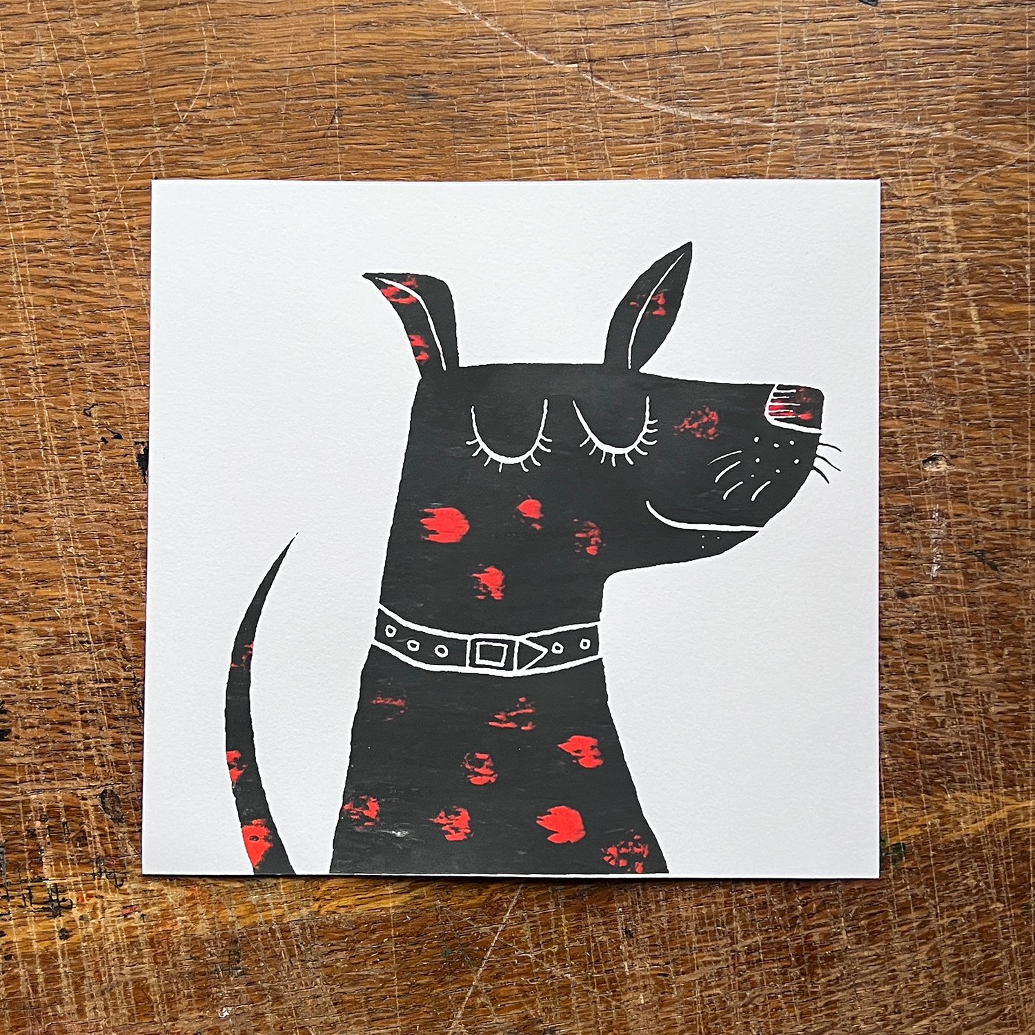 Happy Dog Screenprint - black and red spotty