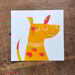 Choose from 3 dogs screenprinted in a mustard and yellow shades with reddish-brown, red, splodge spots and brown stripes.