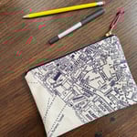 A large printed pouch screenprinted with details of a vintage Edinburgh street map.